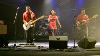 En rouge et noir, leurs couleurs fétiches, Maud Lescuyer et ses musiciens ont retracé en chansons les grandes étapes de l’histoire du groupe.